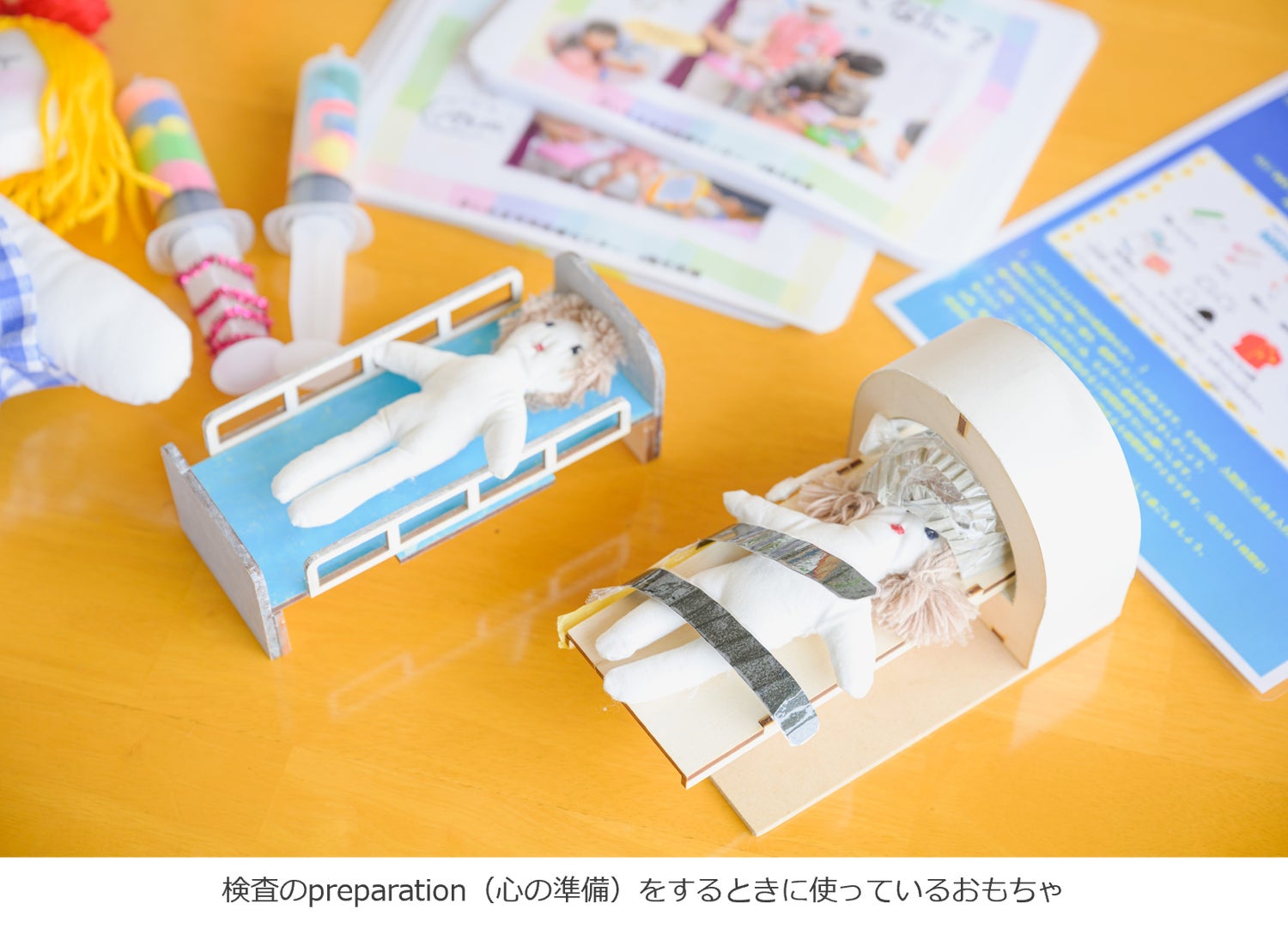 そして検査のpreparation(心の準備)を人形や検査機器の模型などを使ってわかりやすく説明し、子どもの理解を深めます。