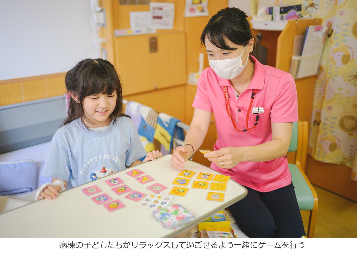 主に小児病棟に入院している子どもたちの遊び相手や家族のメンタルケアを行っているほか、より医療の領域まで入り込んで、子どもが前向きに検査や治療に向き合えるようにサポートしています。