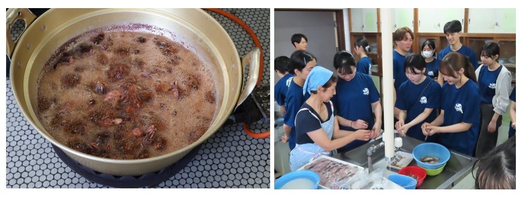 <いかめし作り体験をする大学生>
