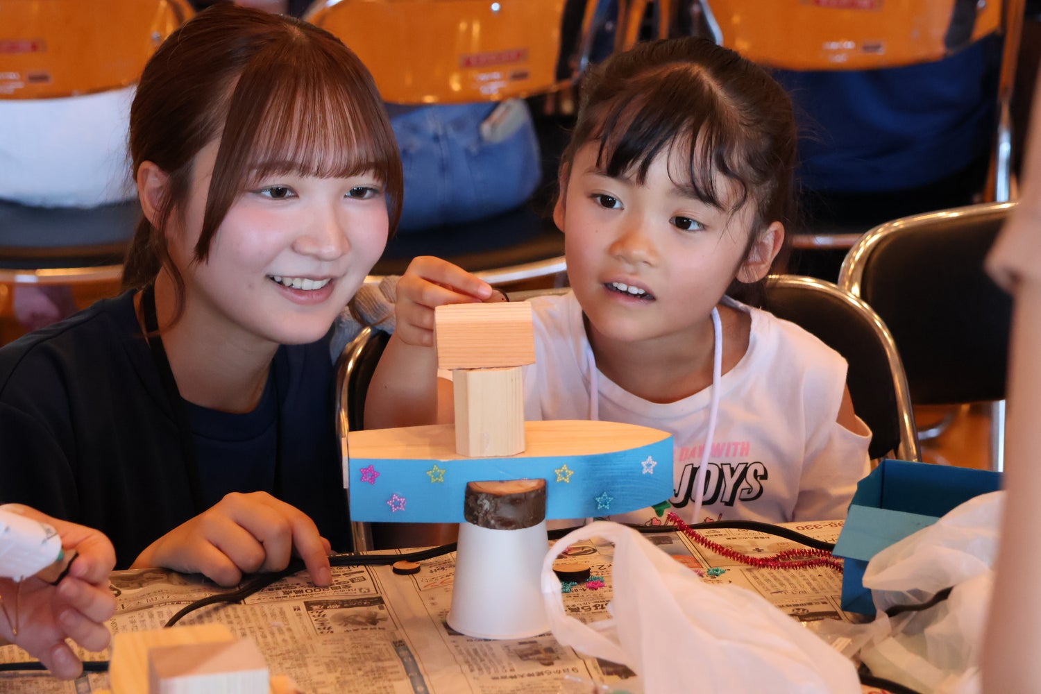 子どもたちの動きをはじめ、こうしたプロジェクトには想定外の出来事も付き物です。玉入れは当初考えていた4種の競技が3種となったり、船の工作では最初に用意していた工作材料が多すぎたので急遽、保護者とし来ていたお父さん・お母さん方にも持ち帰ってもらったりもしました。「お父さん同士が森町ならではの船の話をするなど、周りの人も一緒に巻き込める形にできたのは結果的に良かったです」と高仲さんは振り返りました。
