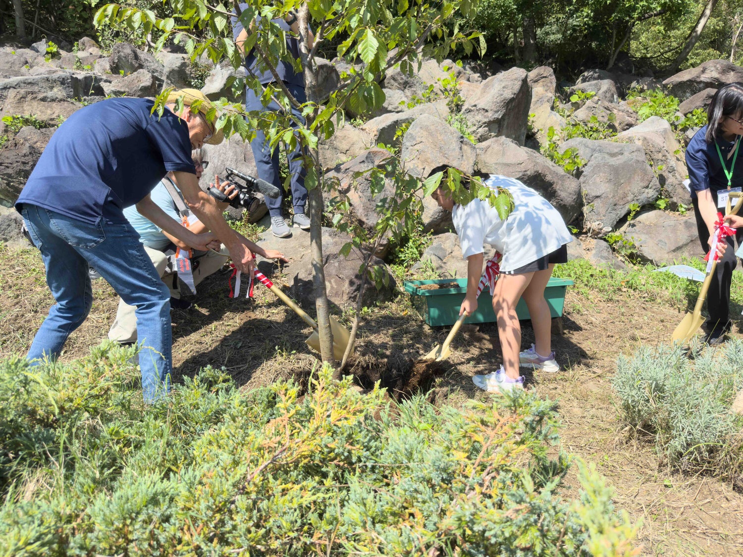 1周年記念の植樹イベントで参加者のお手伝いをする理事長・赤坂信