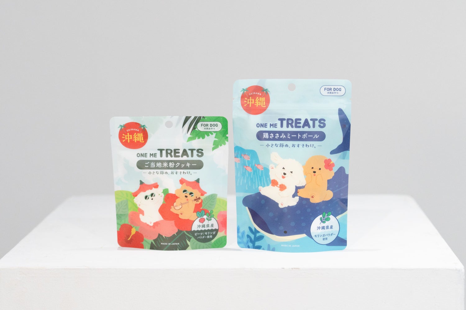 ONE ME TREATSは、その土地の風景が浮かぶパッケージ、無添加・国産素材へのこだわり、そして「お留守番のあの子へのおすそわけ」というストーリーを一体で届ける、ペット専用のお土産ブランドです。