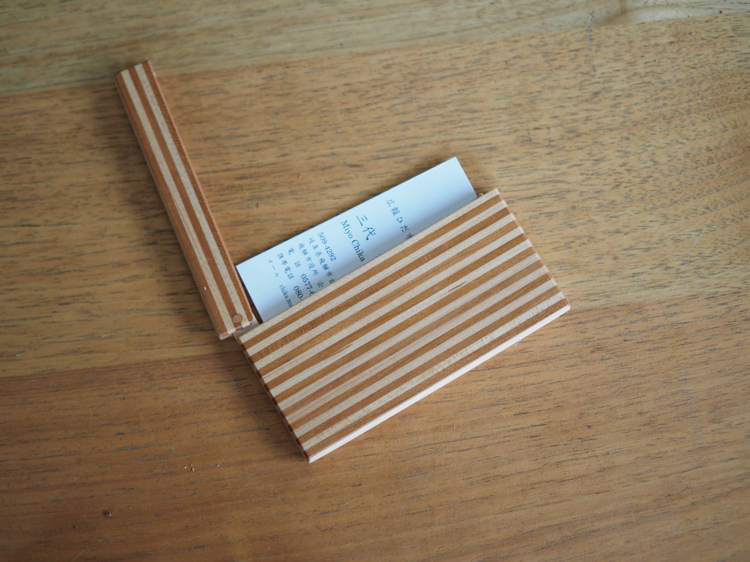 樹種によって色合いが異なる広葉樹の特徴を生かした名刺入れ