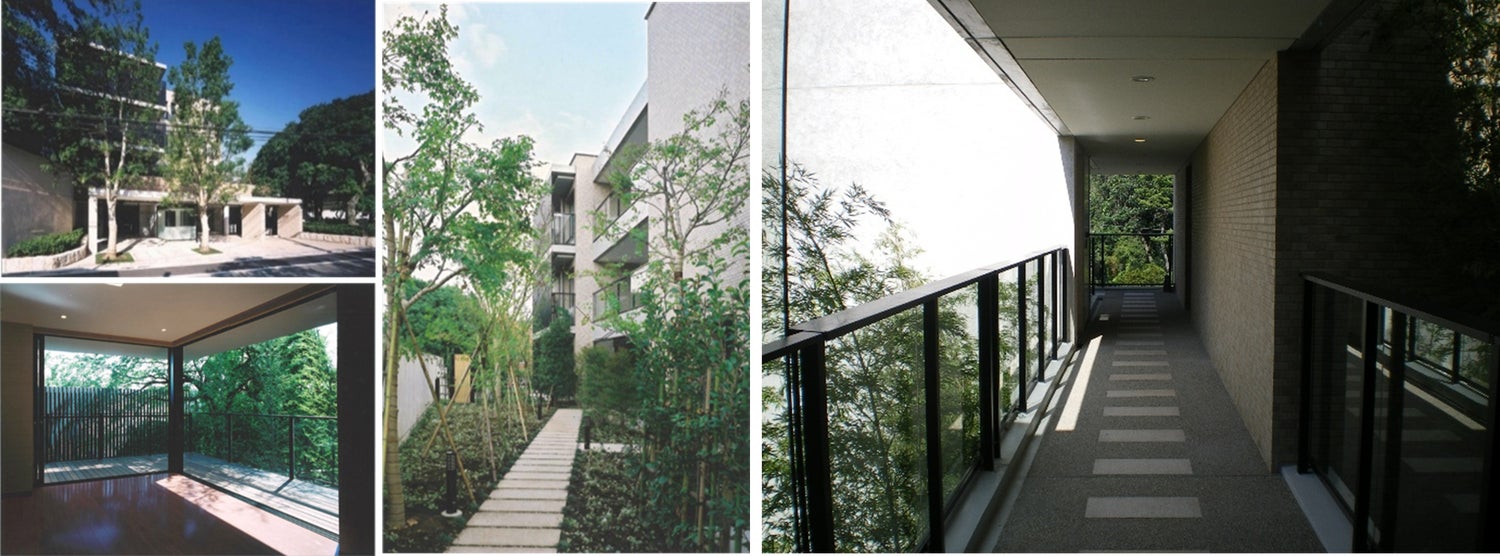 その一例が、2007年に新築分譲マンションとして竣工したザ・グランツ等々力です。周辺環境に調和した「自然とのふれあい」と「おもてなし」をテーマに緑と調和する外廊下やガラス手すり、石畳、屋外と一体化するサッシなど、当時としては目新しい独自の設計を採用し、細部まで丁寧に造り込まれています。