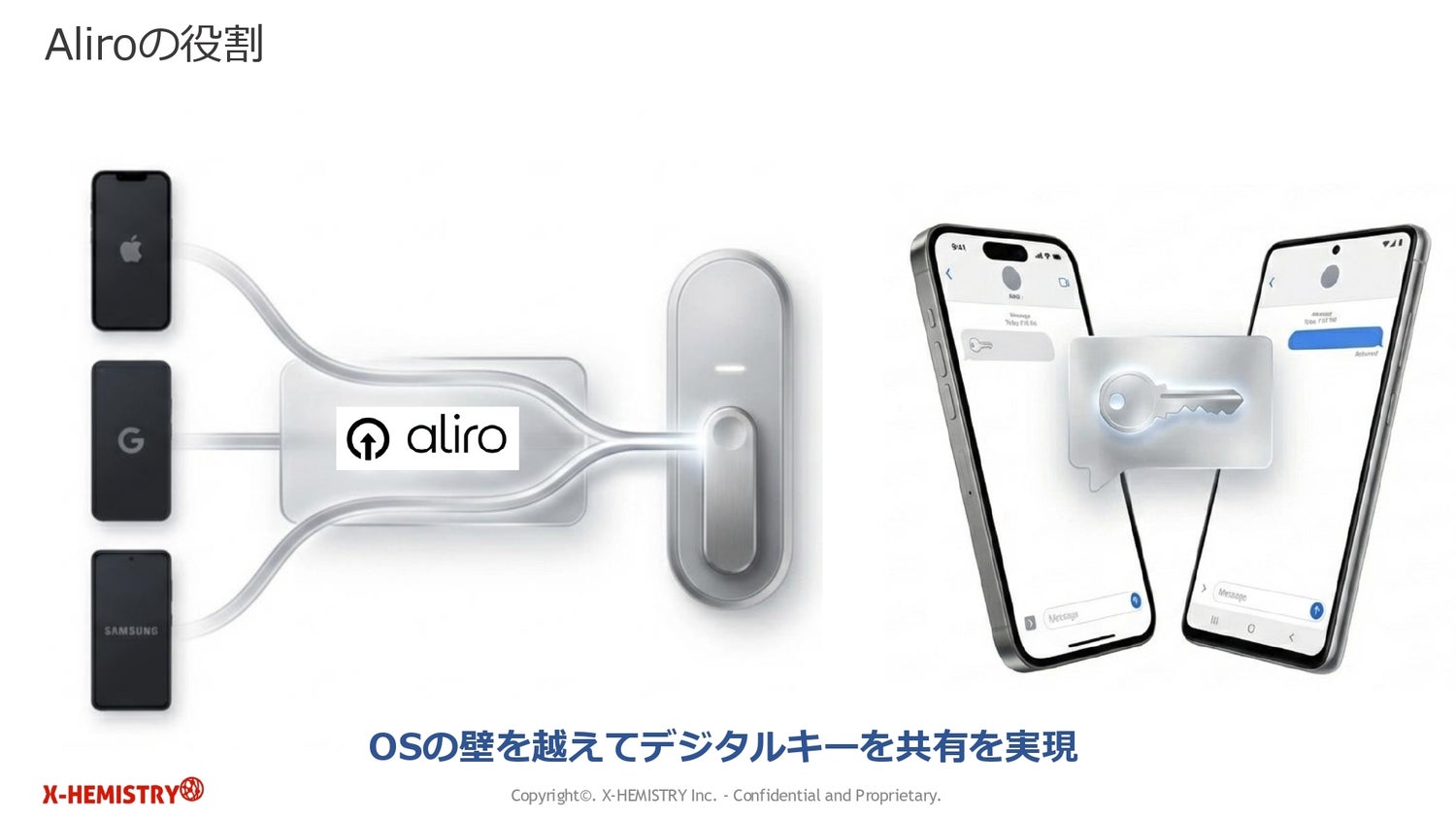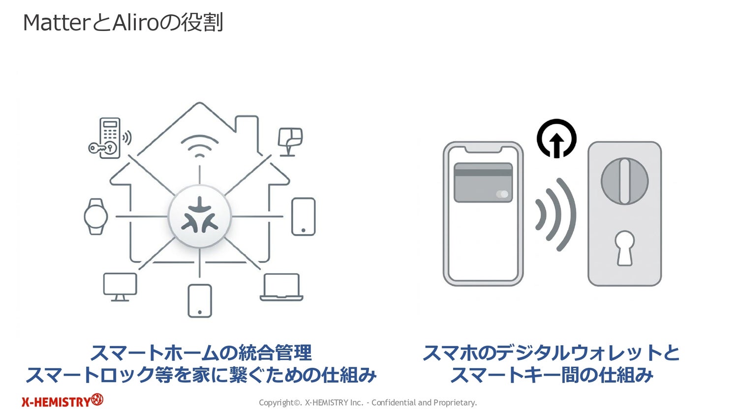 続いて、アライアンス日本支部代表/X-HEMISTRY CEOの新貝氏が、MatterやAliroについて解説がありました。