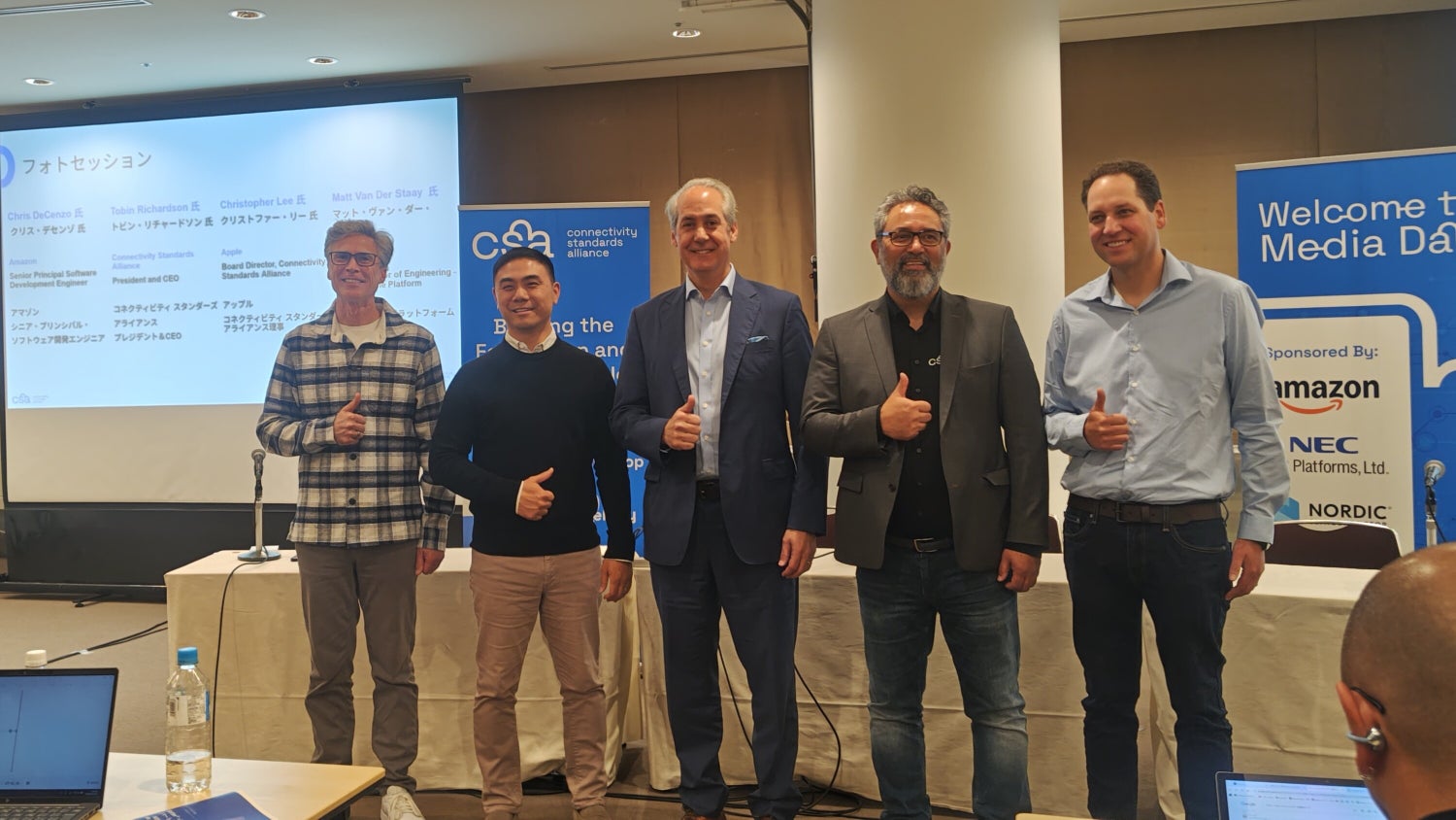 Tobin氏の基調講演の後には、Matterをリードするエコシステム3社の代表とのフォトセッションも行われました。