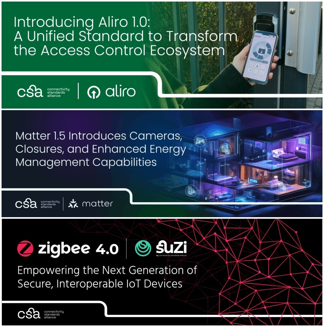 直近の成果として、2026年2月にスマートキーの統一規格「Aliro(アリロ) 1.0」がリリースされました。また、Matterもカメラ機能やエネルギー管理を強化したバージョン1.5がリリースされ、Zigbee4.0やサブギガヘルツ標準「Suzi」のリリースなど、相互運用性の拡大が報告されました。