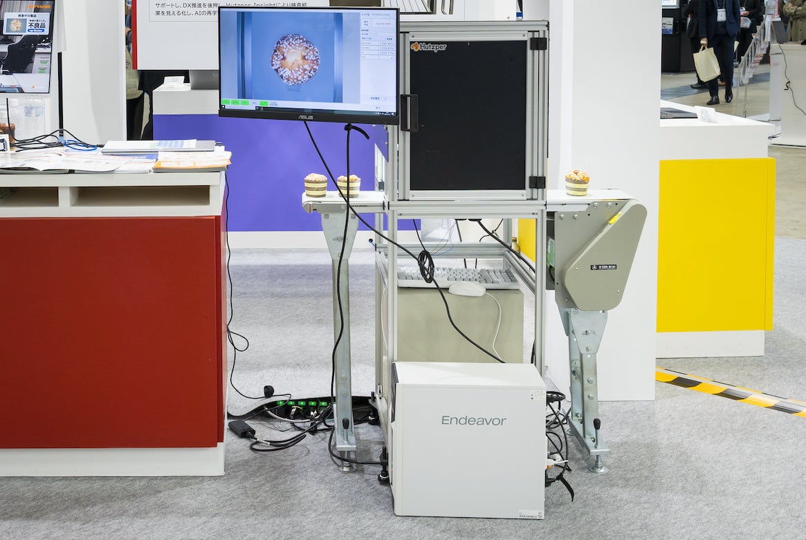 「メキキバイト」という、製造業向けの外観検査AIサービスを展示していただいた株式会社フツパー様。ベルトコンベア上を流れる製品の良品不良品の判別をAIで自動化し、不良品の自動排除までをサポートするソリューションをご提供されています。