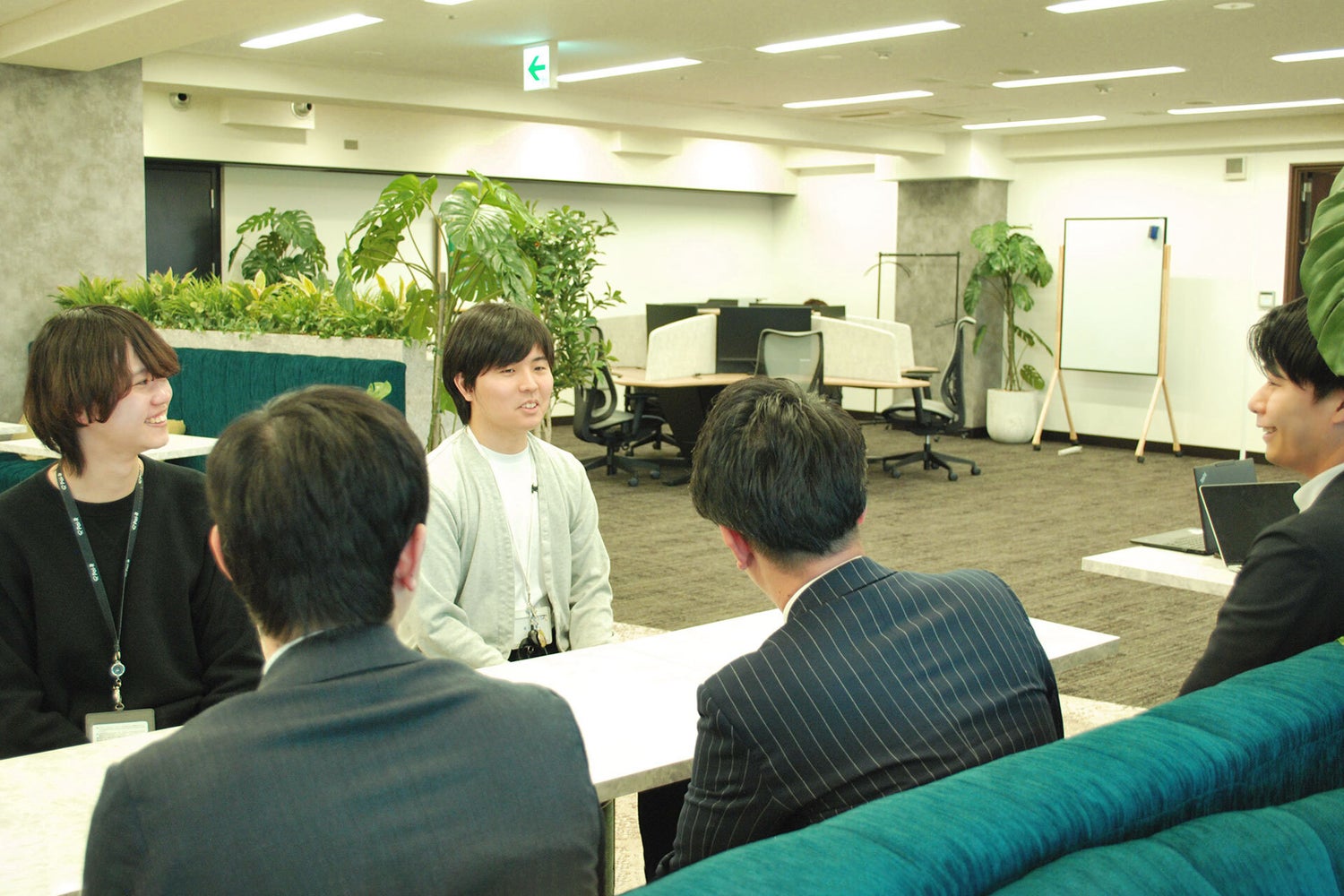 パイ・アール社内のフリーアドレスエリアでインタビューを実施しました。