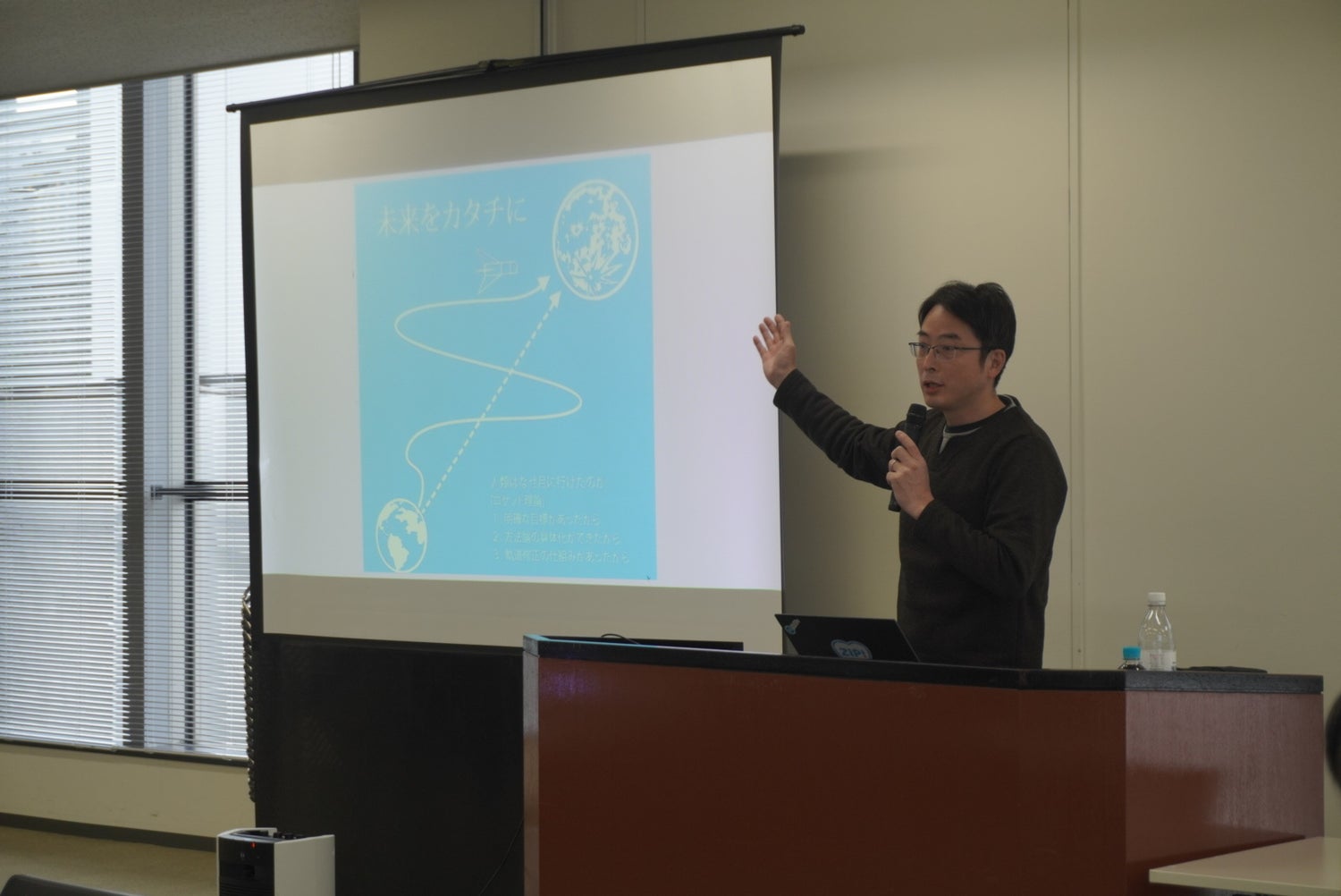 マンダラチャートの作成後は、同会副会長で税理士の髙橋 晃彦氏(株式会社RINGS PRO)が登壇し、人類が初めて月面着陸を成功させたアポロ計画を例に、目標達成に向けた“逆算の考え方(ロケット理論)”についてお話ししました。