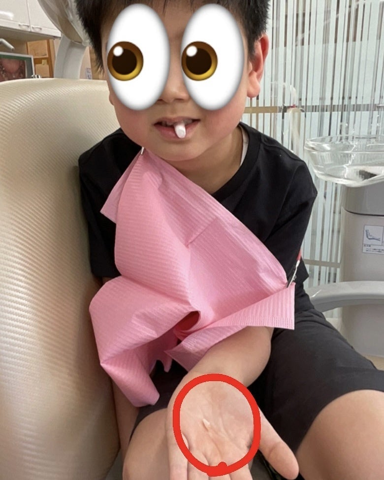 ※乳歯の抜歯を『アネスパッチ』で(森岡歯科医院 インスタグラムより)