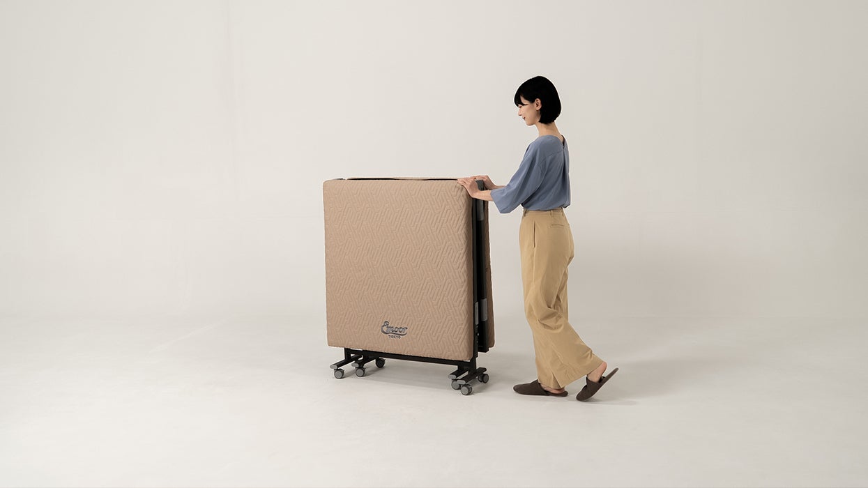 私たちはこの製品を、従来の折りたたみベッドの延長線上にある上位モデルとは考えていません。空間を「使う」ための家具ではなく、空間を「生み出す」ためのベッドとして、「スマートスペースベッド」と命名しました。