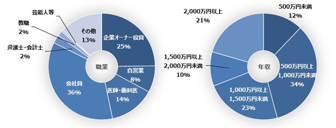 ダイナースクラブ会員全体の構成比(左図:職業、右図:年収)