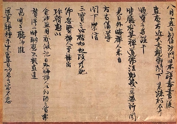 東京の静嘉堂(せいかどう)文庫美術館に保管される重要文化財の中に、中峰明本墨蹟(ちゅうほうみんぽんぼくせき)「大友直庵(じきあん)に与う尺牘(せきとく)」という史料があることは、以前に紹介しました。中国元の時代の高僧中峰明本が、鎌倉時代末...