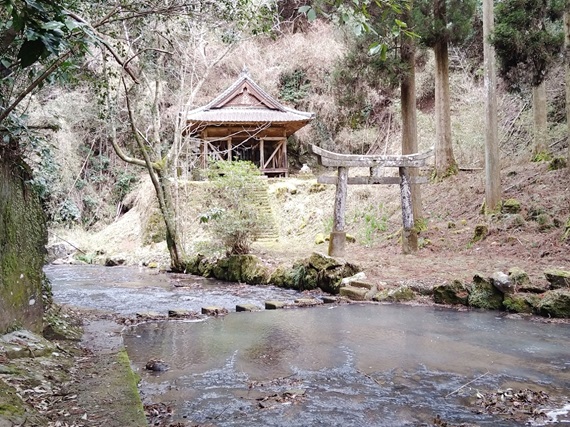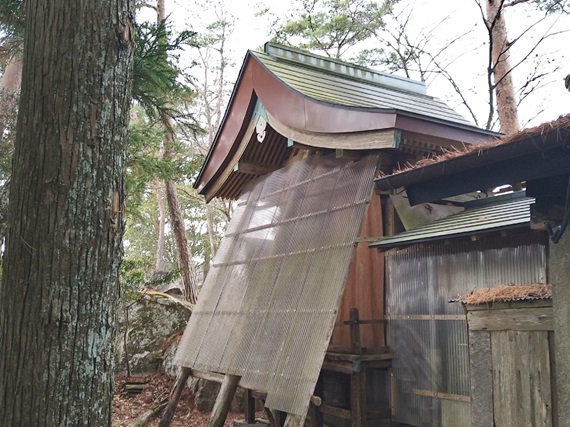 松谷(まつたに)神社 別名「神明社」 豊後大野市三重町内山 コンクリート製拝殿・幣殿に連結するように本殿があります。尾根上の頂に位置し、相当風雨が強いのでしょう。本殿を左右から棒で支え、トタンで覆っています。...