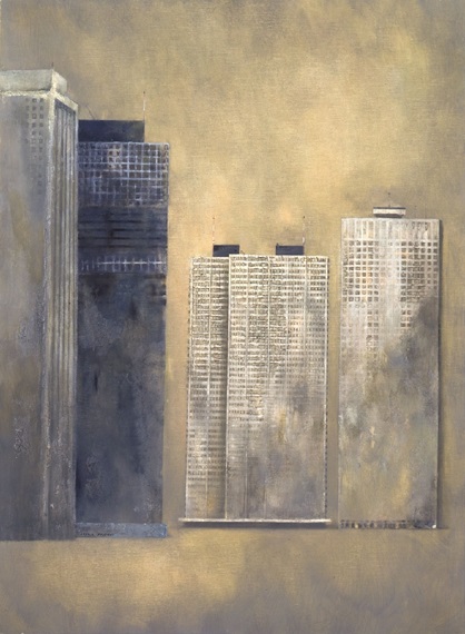 中津市出身の洋画家糸園和三郎の代表作の一つ、「四つのビルディング」。左から新宿住友ビル、新宿三井ビル、京王プラザホテル、KDDビル(現KDDIビル)が並んでいる。 現在では東京都庁をはじめとして超高層ビルが林立する新宿西口の副都心だが...