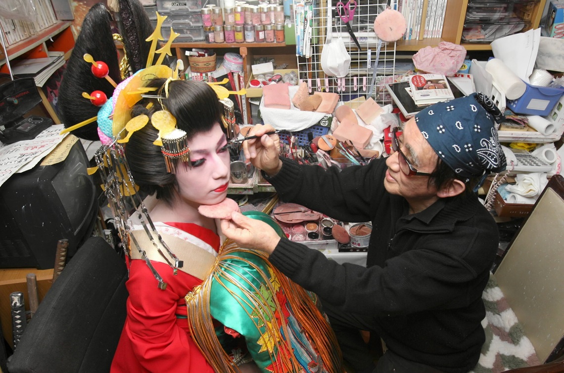 宿泊客と向き合った。その人の顔立ちを見た瞬間、迷わず決める。 「花魁おいらんにして」 「いやいや、アナタは『極妻』の方が様になる」 メークを望まない人もいる。 「だったら……海軍...