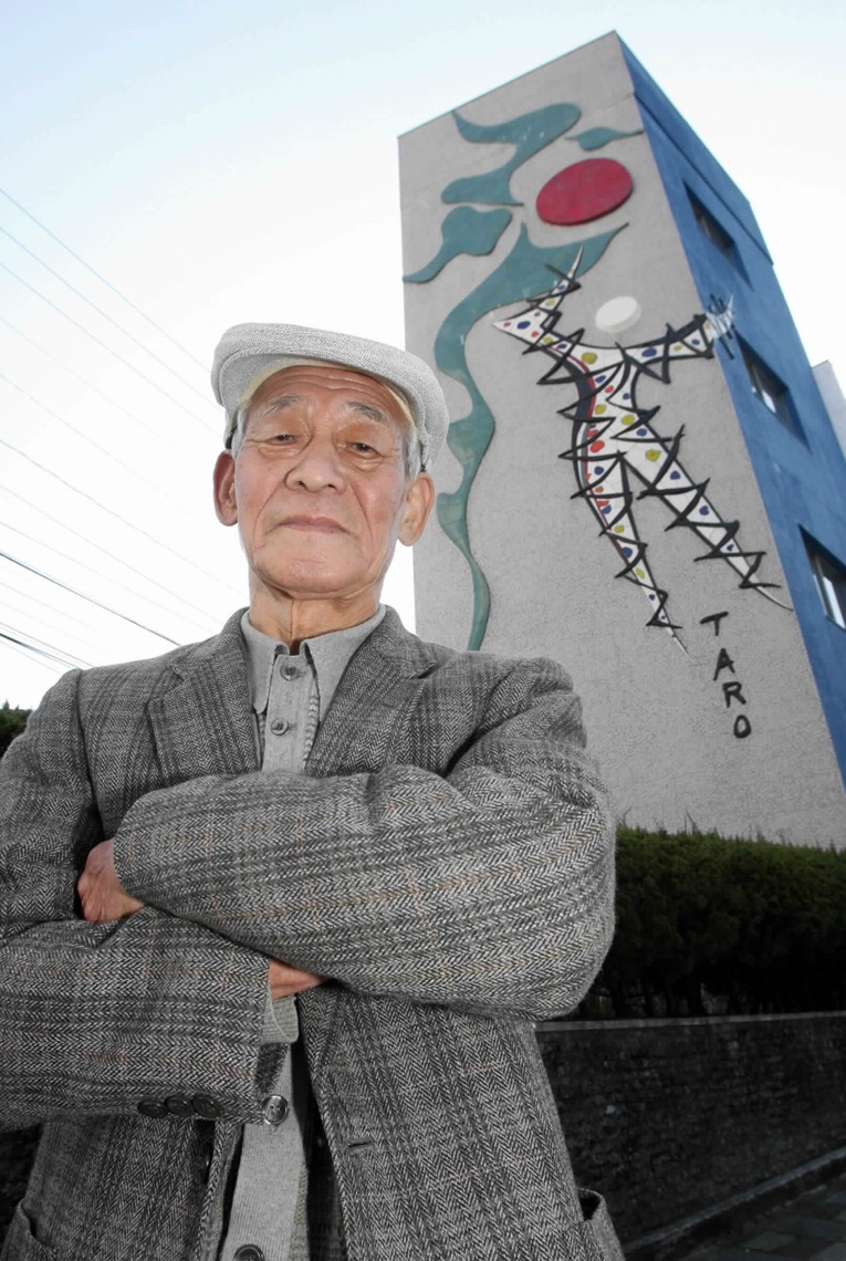 当時47歳。腕には自信があった。「できますよ」。気軽にそう答えてから、不安になった。「えらいモンを請け負うてしまった……」 武蔵次男。85歳。 JR別府駅西口から見える雑居ビルの壁面に、芸術家・岡本太郎の陶板壁画を手掛けた元タイル...