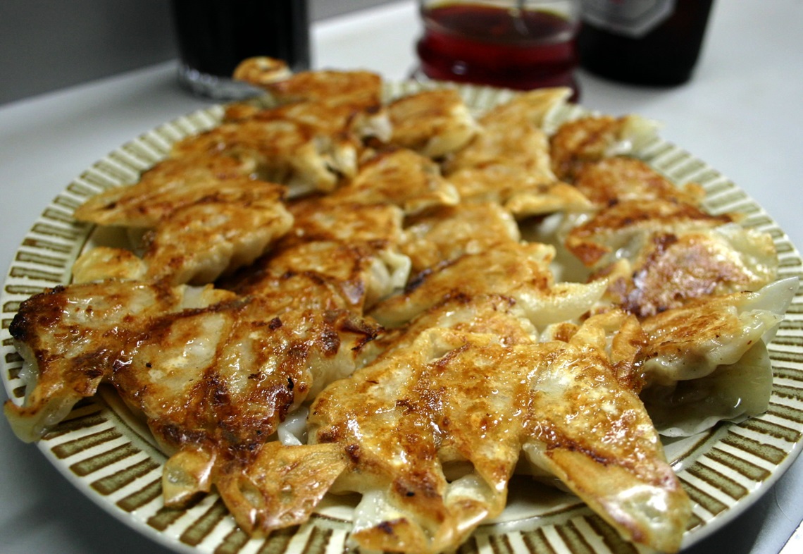 迷うことはない。 わずか7席のカウンター。目の前の壁に掲げられた「お品書き」から選べばいい。 〈 舌代 〉 鍋烙(やきギョーザ) 六百圓えん也 ビール 六百圓也 ...