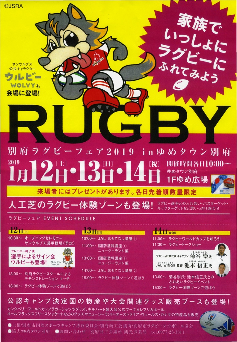 今秋のラグビーワールドカップ(W杯)大分開催に向けたPRイベント「別府ラグビーフェア2019」が12日、別府市楠町のゆめタウン別府で始まった。...
