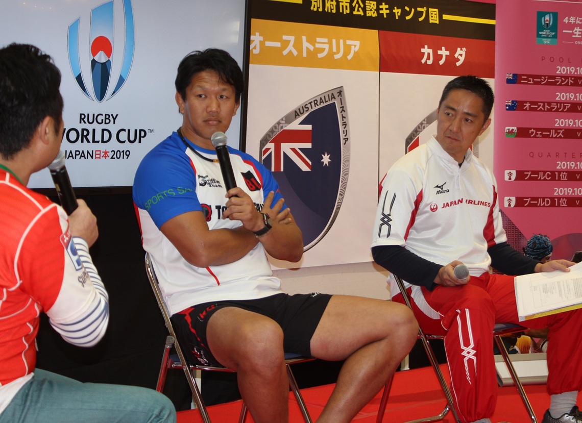ラグビー元日本代表主将の菊谷崇さん(38)と、大分市出身で日本航空ラグビー部の池本信正監督(45)のトークイベントが14日、別府市楠町のゆめタウン別府であった。ラグビーワールドカップ(W杯)大分開催に向けたPRイベントの一環。ラグビーファ...