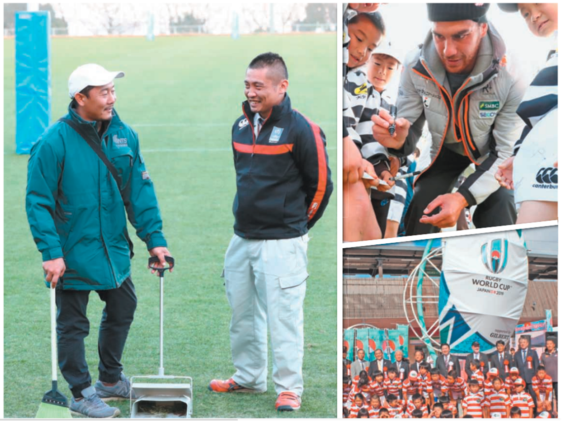 県ラグビー界を支えてきた「聖地」は、全面芝のワールドカップ(W杯)仕様へと姿を変えた。 昨年11月10日。720席のスタンドは観戦客であふれ、押し出された数百人が立ち見やパイプ椅子で歓声を上げた。 まぶしい緑の上を、赤と水色のジャ...