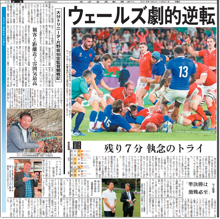 ラグビーワールドカップ(W杯)大分開催の準々決勝残り1試合が20日、大分市の昭和電工ドーム大分であり、世界ランキング3位のウェールズが同8位のフランスを20―19で振り切り4強に進んだ。...