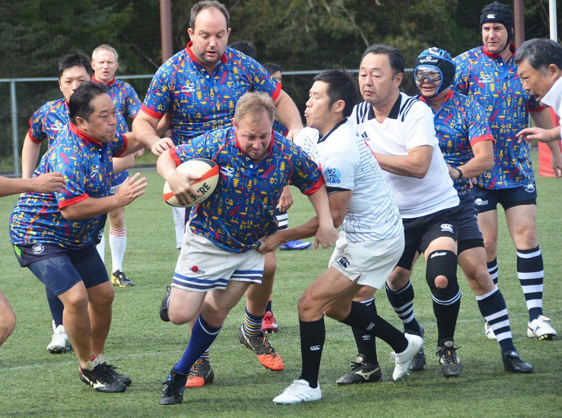 40歳以上で構成するラグビーの「大分困惑クラブ」が20日、ラグビーワールドカップ(W杯)の観戦で来日した多国籍の「国際迷惑クラブ」と由布市で交流試合をした。W杯大分開催が縁で実現した対戦。年齢を感じさせない激しいプレーを展開し、試合後は互...