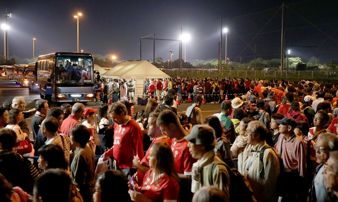 午後9時を回った。大分市中心部に数百台のシャトルバスが滑り込んでいく。 ラグビーワールドカップ(W杯)大分開催の第3試合、ウェールズ―フィジー戦を終えた9日夜。県庁本館の一角にあるW杯推進課のホワイトボードには、バスの運行状況が間断な...