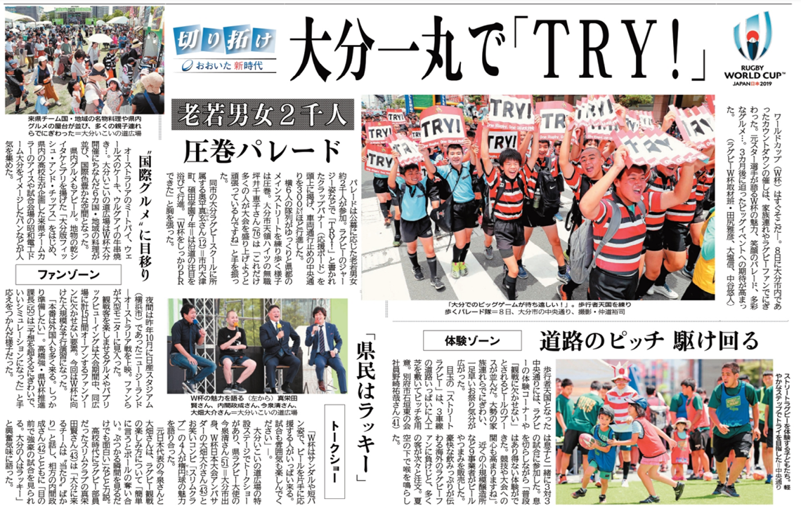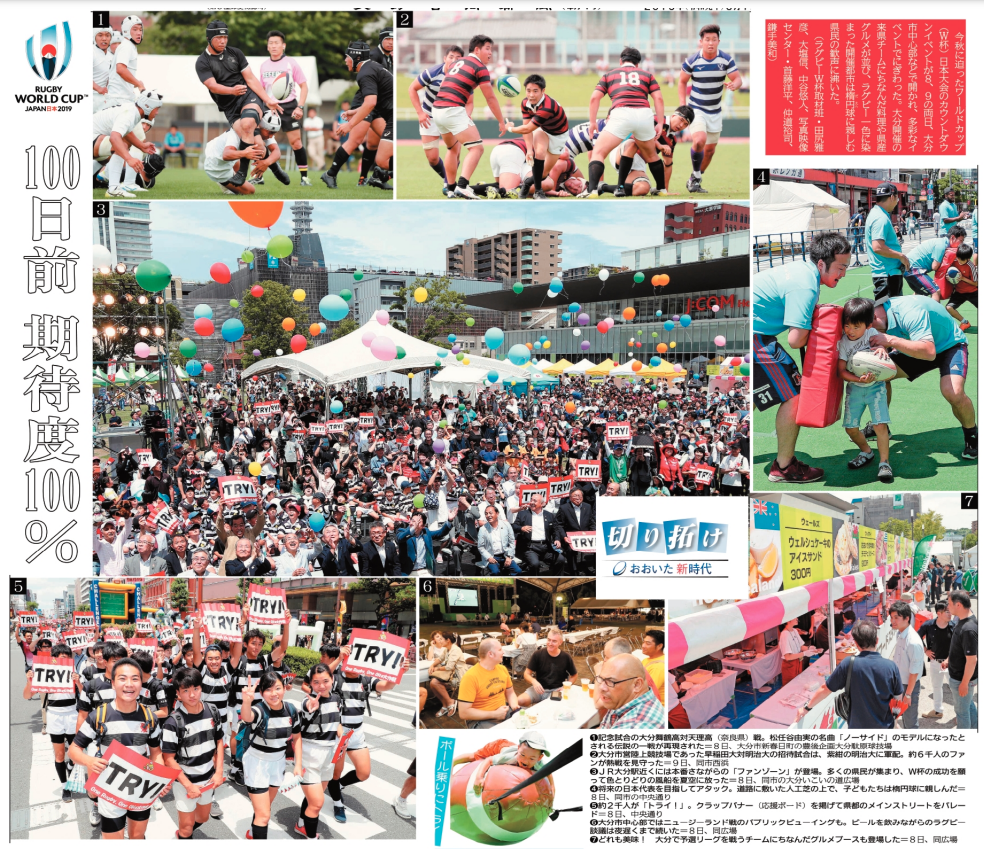 ラグビーW杯は大分県に何をもたらすのか。新しい時代を歩む大分の“これから”を追う年間企画「切り拓(ひら)け~おおいた新時代」。1次リーグ3試合と準々決勝2試合の計5試合を開催した「OITA」は海外から多くの観戦者が訪れ、大会期間中は熱狂に沸いた。W杯フィーバーの日々を各記者が記録し、長期連載では、世界的なスポーツイベントを地方都市で受け入れる意味と意義を考えた。