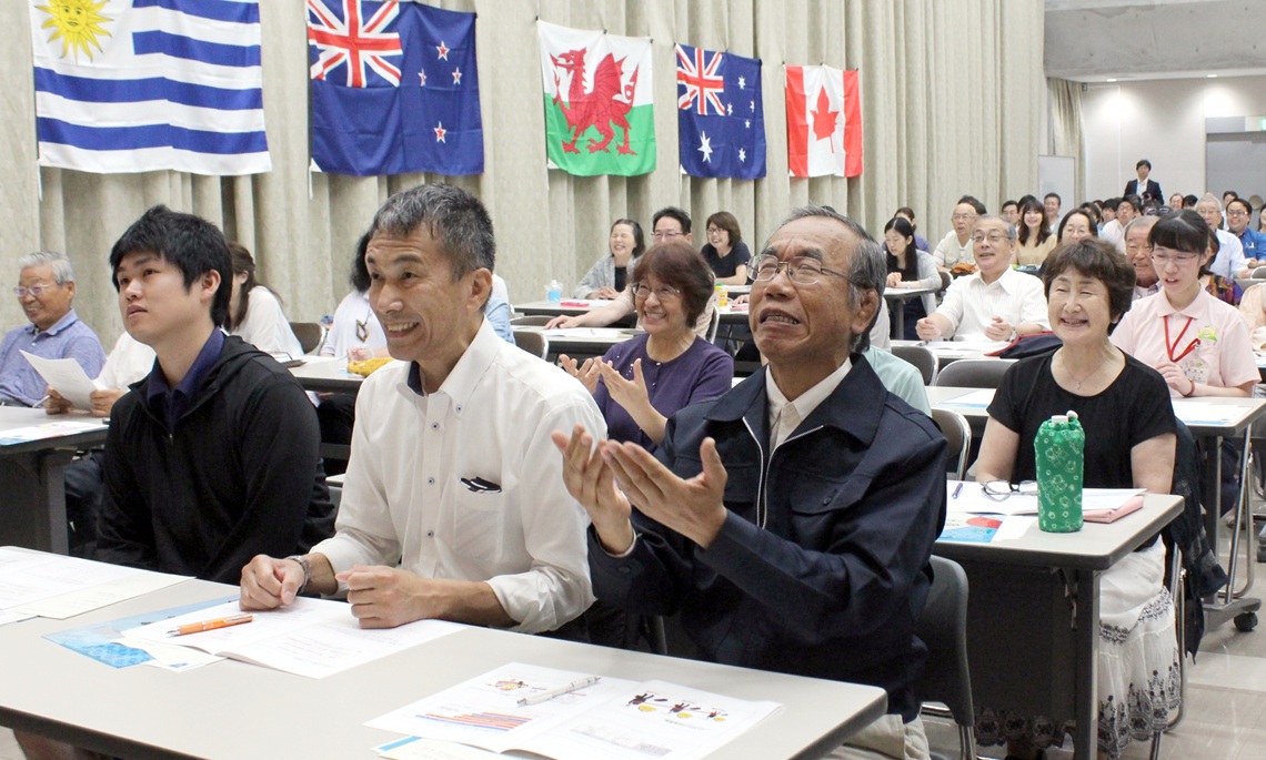 「笑顔の練習をしましょう」。7月19日、大分市役所であった市民ボランティアの研修会。約100人の参加者は一斉に口を大きく広げ、目を見開いた。 簡単な英語のあいさつなど、ラグビーワールドカップ(W杯)大分開催にやって来る外国人客への対応...