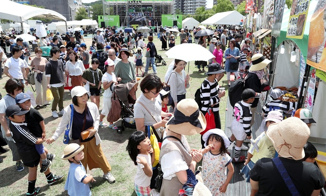 今秋のラグビーワールドカップ(W杯)日本大会の開幕まで100日余りとなった8日、開催地の大分市中心部で機運醸成を図るイベントが開かれた。中央通りは歩行者天国となり、ビールを味わう人で大にぎわい。JR大分駅近くには本番さながらの「ファンゾー...
