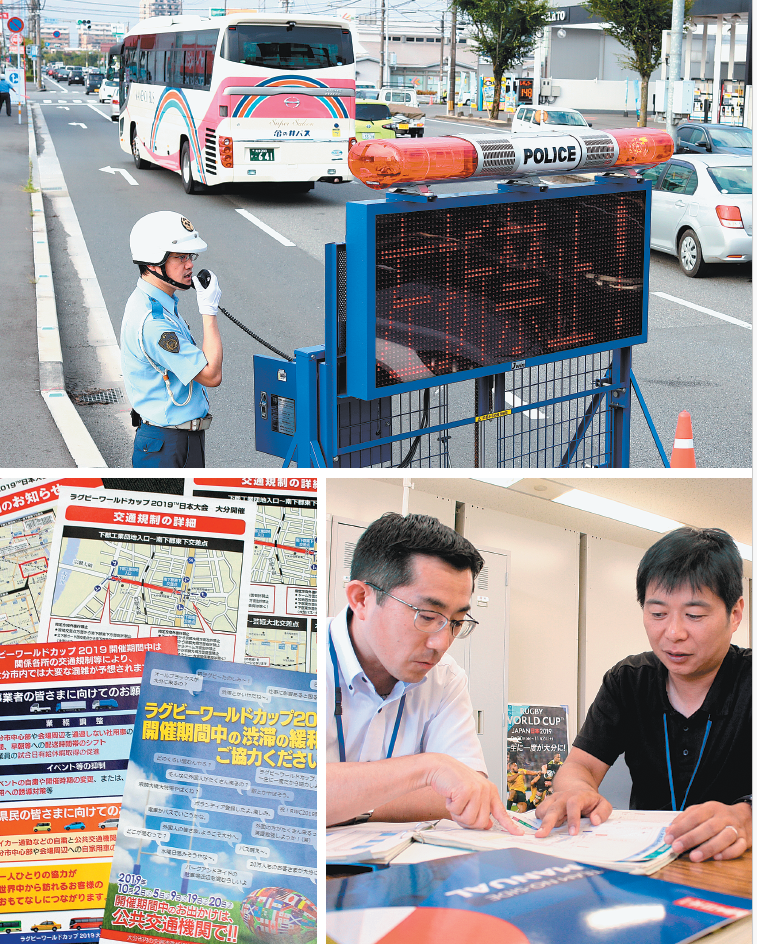 ラグビーW杯大分開催で観客をスムーズに輸送するため、官民でつくる県推進委員会は11日、大分市中心部で交通規制のテストをした。...
