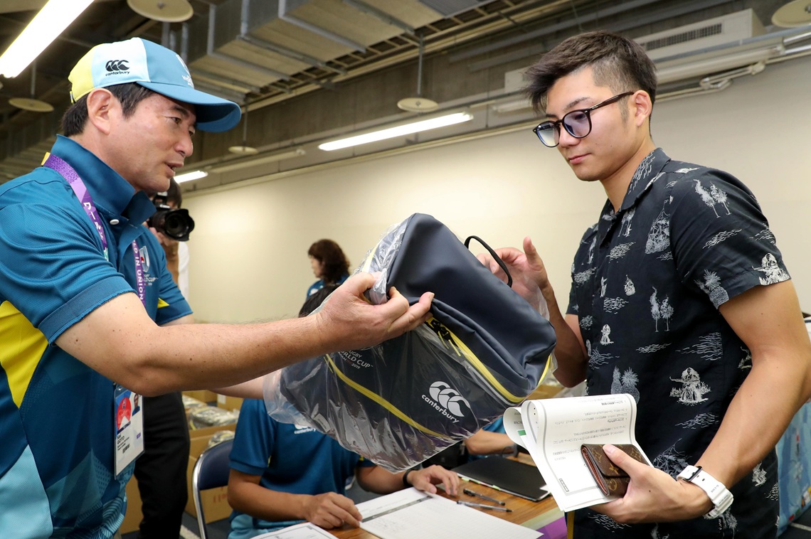 20日に開幕するラグビーW杯日本大会に向けて、同組織委員会は6 日、公式ボランティアのユニホームなどグッズ一式を試合会場となる昭和電工ドーム大分(大分市横尾)で配布した。...