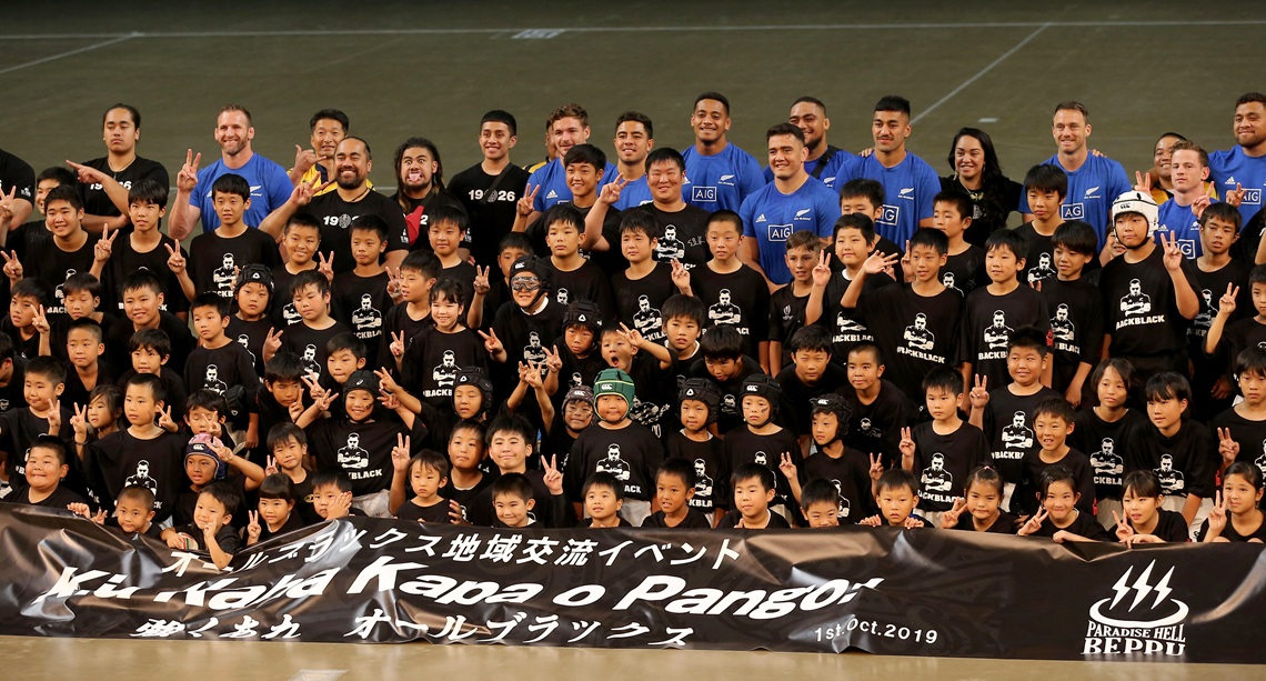 ラグビーワールドカップ(W杯)での3連覇を目指し、公認キャンプ地の別府市で調整を続けているニュージーランド(NZ)代表「オールブラックス」と県民との地域交流イベントが1日、同市のビーコンプラザであった。ラグビー少年らが「スター軍団」との触...