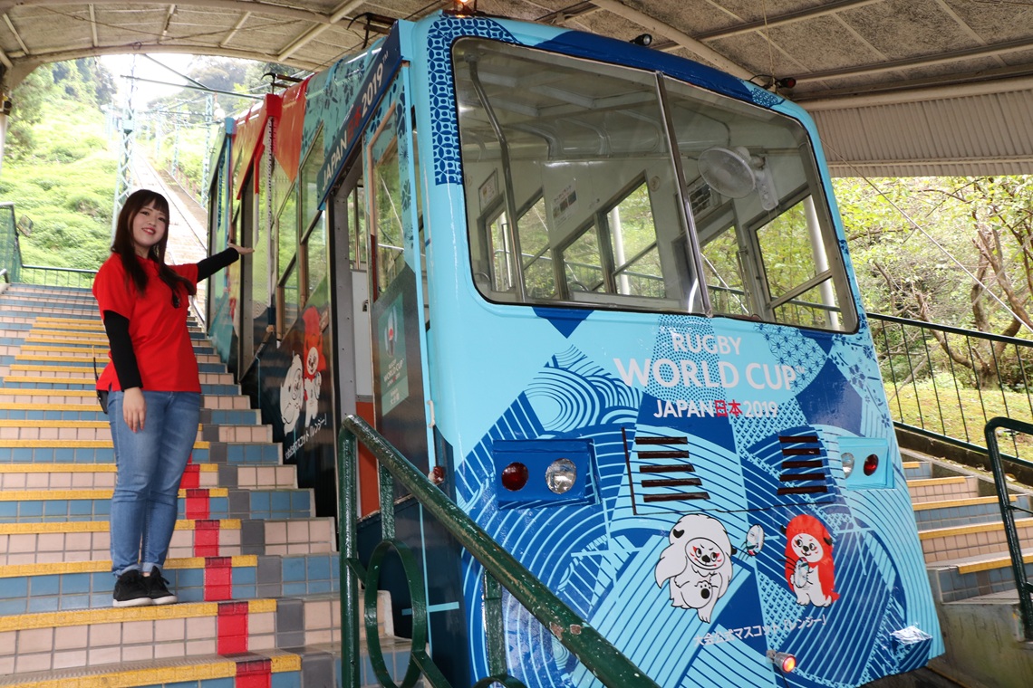 ラグビーワールドカップ(W杯)を応援しようと、別府市の別府ラクテンチはW杯のラッピングデザインを全面に施したケーブルカーの運行を始めた。...