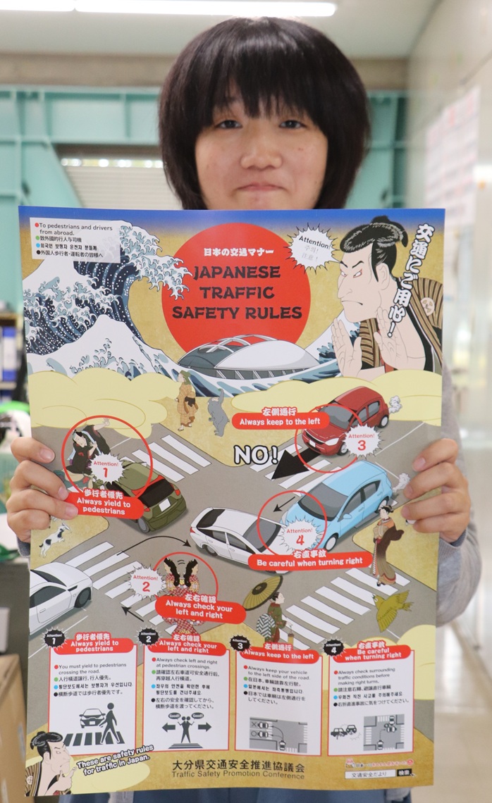 ラグビーワールドカップ大分開催で来県する外国人観戦客らの交通事故防止につなげようと、県は日本の交通ルールやマナーを4カ国語で紹介するポスター1,300枚を作った。...