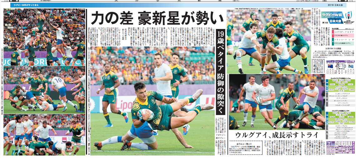 ラグビーワールドカップ(W杯)日本大会は5日、大分市の昭和電工ドーム大分で大分開催の第2戦があり、1次リーグD組のオーストラリアとウルグアイが対戦。優勝候補の一角に挙げられているオーストラリアが45―10で快勝した。...