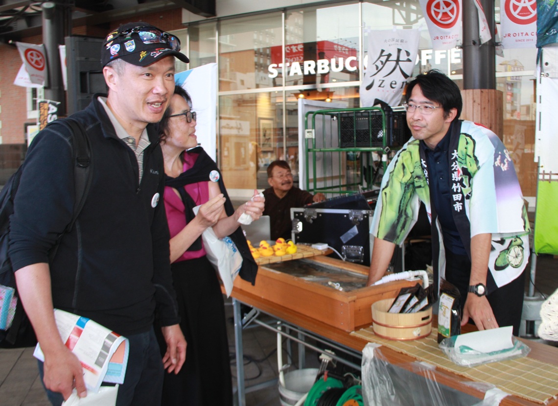 竹田市と熊本県阿蘇市、JR九州などでつくる協議会が8日、大分市のJR大分駅府内中央口広場で誘客のPR活動をした。...