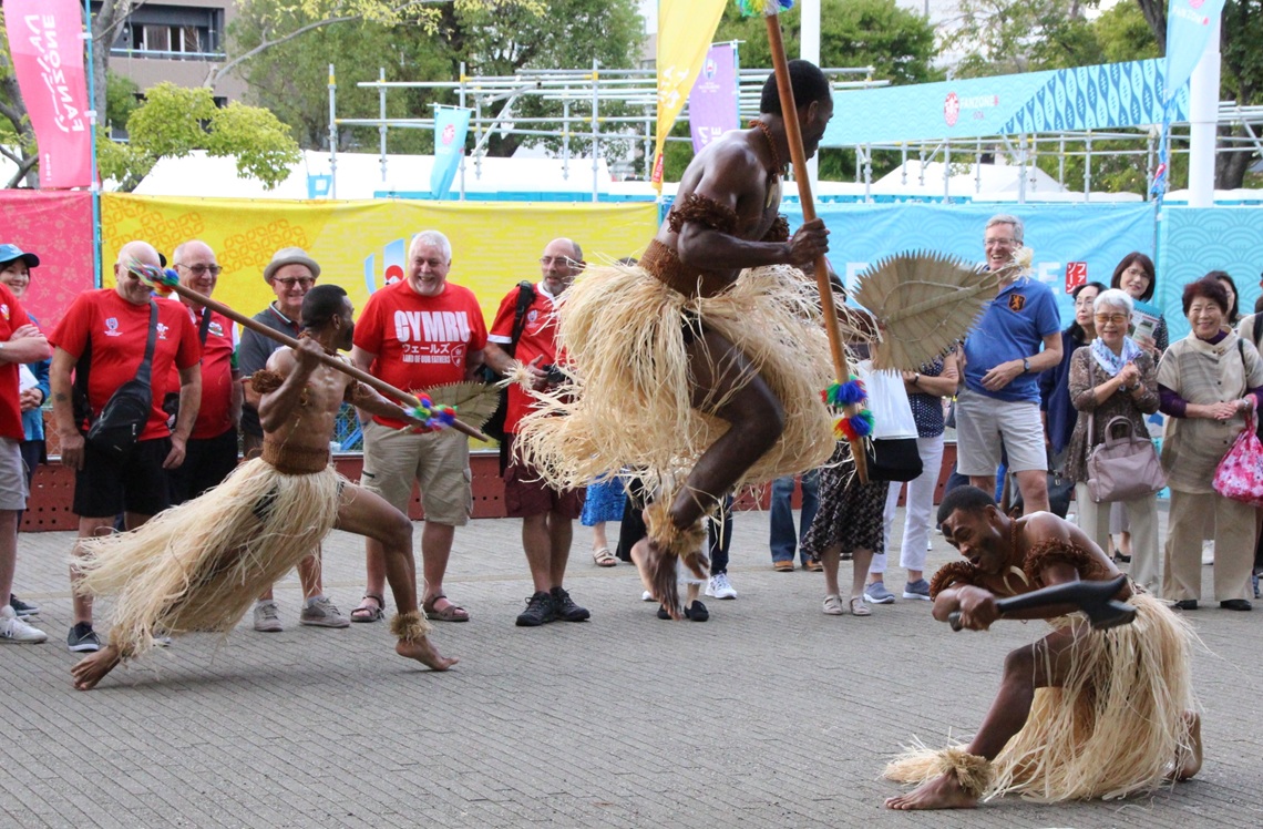 対戦前日の両国の人たちが入り交じり、音楽に合わせて練り歩いた。これもノーサイドの精神の表れかもしれない。...