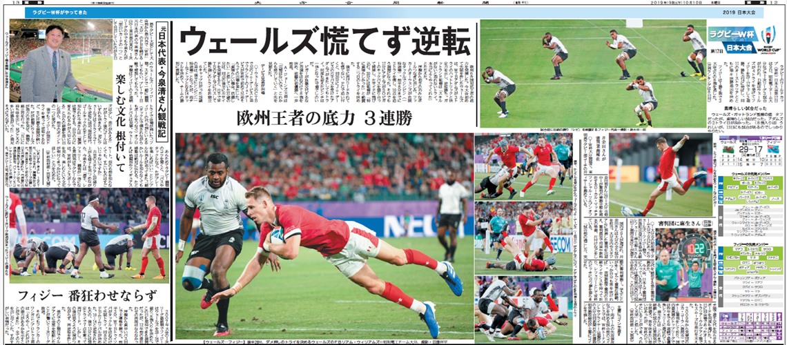 ラグビーワールドカップ(W杯)日本大会は9日、大分市の昭和電工ドーム大分で大分開催の第3戦があり、1次リーグD組のウェールズ(世界ランキング2位)とフィジー(同11位)が対戦した。...