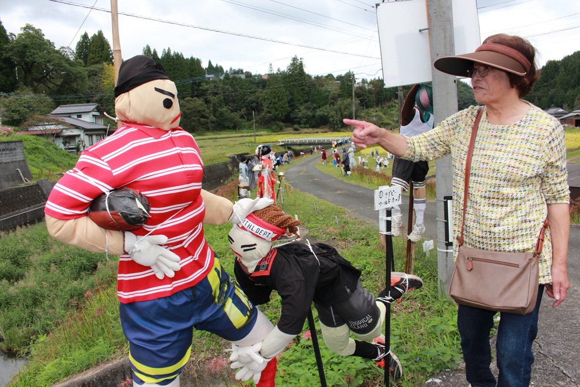 日田市天瀬町本城で恒例の「案山子(かかし)まつり」が開かれている。同町の五馬中同窓生らが手作りした七福神をはじめ、地域住民らによる工夫を凝らした「今年の顔」が来場者を楽しませている。...