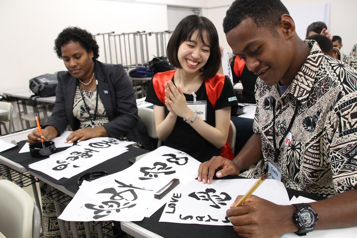 ラグビーワールドカップ(W杯)に合わせ、大分市を訪れているフィジーの大学生が8日、大分大医学部書道研究会のメンバーと交流した。...