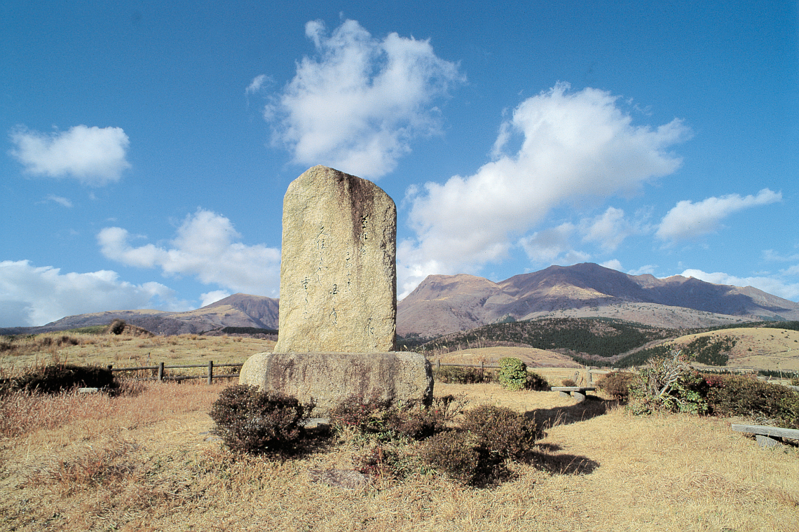 ススキの穂波が銀色に光り始めると、高原の秋は一気に進み、山や谷が紅葉するとやがて冬が急ぎ足でやって来る。春の野焼きの後、すぐに緑がもえて夏が訪れるように、久住高原の四季の移り変わりは実に鮮やかだ。 「草深野ここにあふげば国の秀(ほ)や...