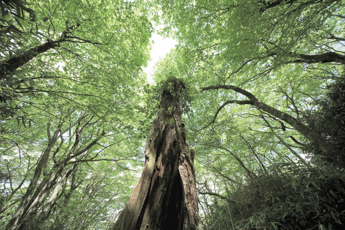 祖母・傾山系は深い樹林をまとい、岩峰・岩壁を連ねる極めて男性的な山容である。作家・深田久弥は九重山(くじゅうさん)とともに「日本百名山」に選んだが、九重の女性的な優しさに比べ、彼はその対照的な姿をとらえて「緩い稜線(りょうせん)を左右に引...