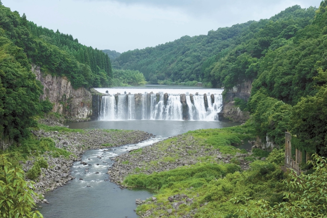 豊後大野市の大野町と清川町の境、大野川の本流にかかるのが沈堕(ちんだ)の滝である。上流およそ400mの地点で本流に緒方川が合流し水量は多い。高さ約20m、幅約110m。阿蘇溶結凝灰岩の断崖(だんがい)から落ちる滝は、古くから西日本の雄瀑(...