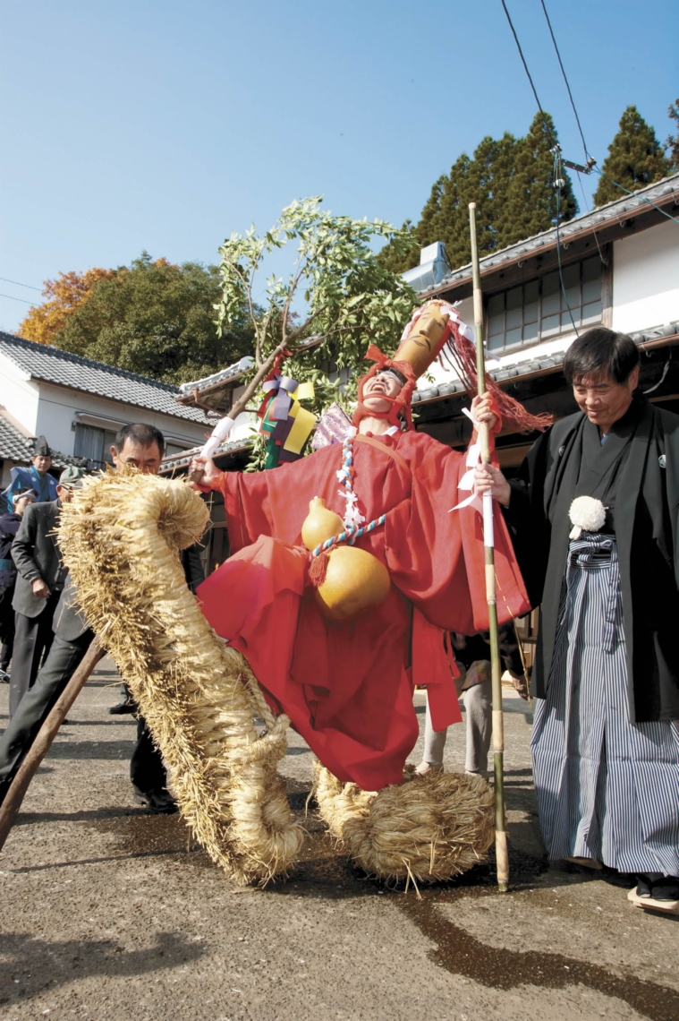「よいしょ」「よいしょ」「ひょうたん様のお通りだ!」―柴山八幡社(豊後大野市千歳町)の霜月祭は、一般に「ひょうたん祭り」と呼ばれる。祭礼では、古武士の行列を擬した一行が里へと繰り出して行くが、その先導をするのがひょうたん様。 その姿が...