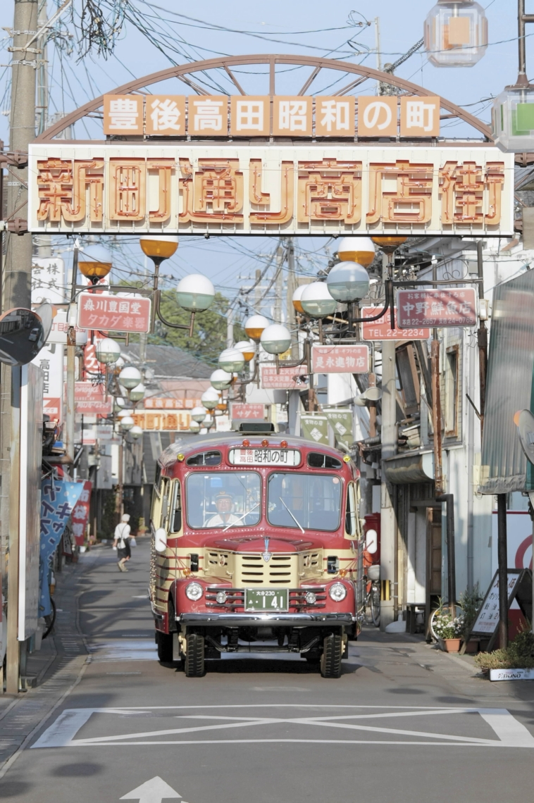 豊後高田市の中心部、中央通り、新町、駅通りなどの商店街で構成されるのが「昭和の町」である。通りの延長は500mほど。ここにたくさんの古い店舗、住宅などが並んで、「ありし日の昭和」が演出され、観光客、買い物客の人波が絶えない。 豊後高田...
