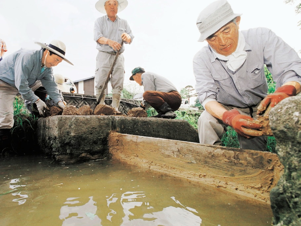 5月15日午前7時、河野晋さん(62)、河野政士さん(67)ら5人が小崎川のほとりに集まった。大事な田植えの準備の一つ「イゼせき」だ。川のイゼ=井堰(いせき)をせき止めて、取水路の掃除をする。小崎では、稲作に欠かせない作業である。 「...