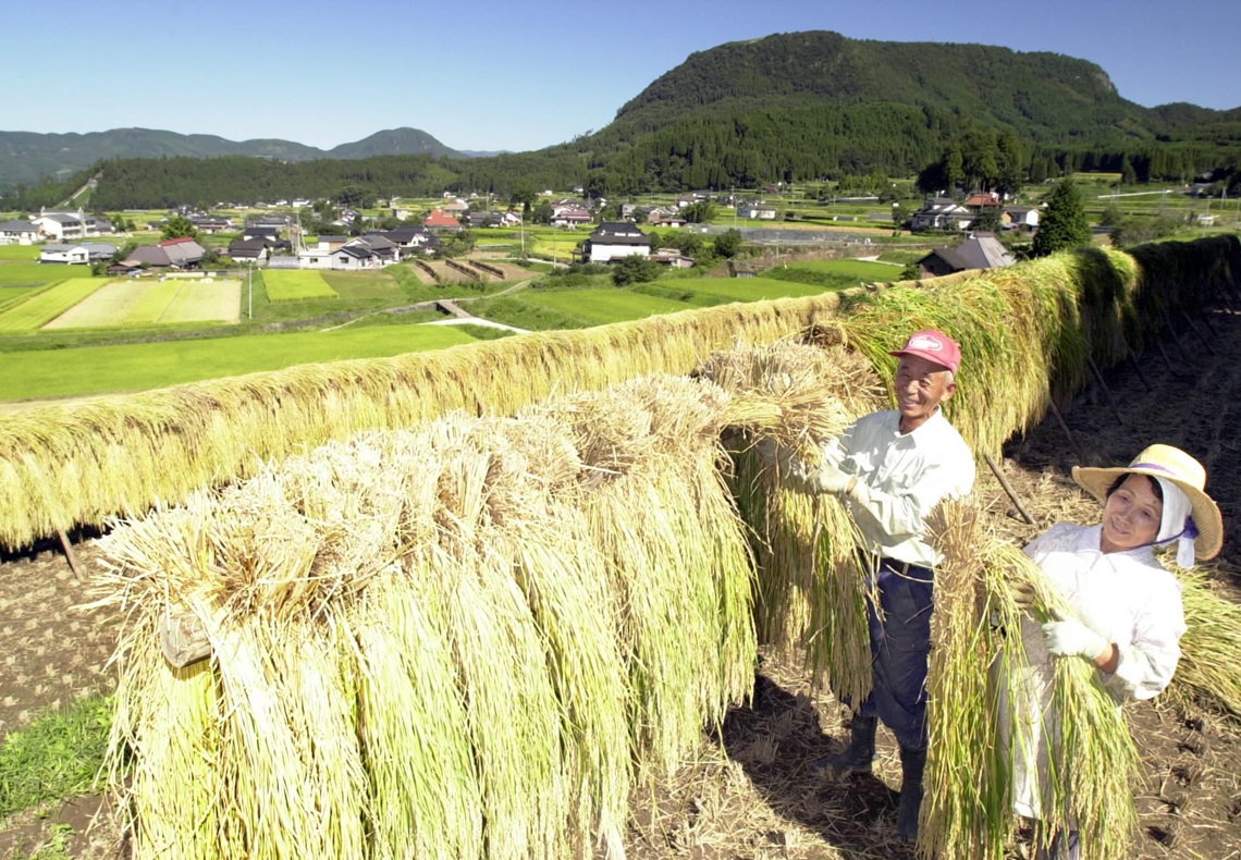 「掛け干し」が玖珠町小田地区の棚田を彩った。穴井輝春さん(54 )、幸子さん(51)夫婦=泊里=は今年も、70代の両親とともに稲刈りに追われた。「代々、受け継がれてきた稲の掛け干し。手間はかかるが、おいしい米ができる」 穴井さん方は...